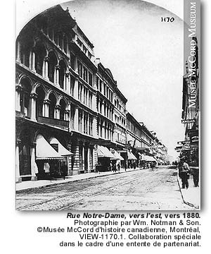 Nous entrons dans un quartier d'affaires en pleine reconstruction, dans la foulée de l'industrialisation qui bouleverse la ville depuis quelque 25 ans. Le centre de la ville n'est plus ce qu'il était en 1850. D'autres bâtiments, encore sur les planches à dessin, seront mis en chantier l'an prochain. Mais l'année 1873 marque aussi le début d'une grave crise économique internationale dont Montréal sentira fortement les effets en 1874. De 1875 à 1879, on ne construira presque rien.