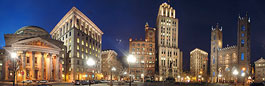 La place d'Armes offre un formidable condensé d'histoire; des témoins de toutes les périodes montréalaises y sont rassemblés autour d'un monument consacré aux fondateurs. |